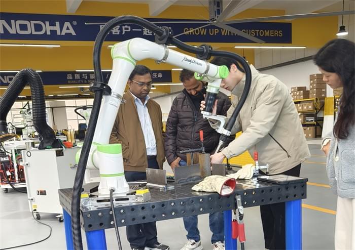The client was received by ReadyOn technical staff and accompanied to the factory. They focused on NODHA's core products, and then, with the help of sales personnel, guided the client through a tour of equipment such as the Pipe Beveling Machine, Plate Beveling Machine, Orbital Cutting Machine, and Flange Facing Machine, explaining product characteristics and application scenarios. The client then inquired about ReadyOn's new project, the collaborative robot welding (Cobot welding ) unit, and learned about intelligent welding technology.
