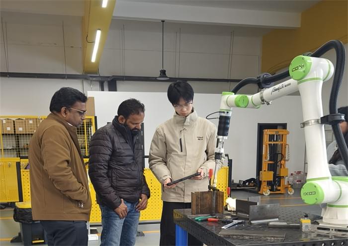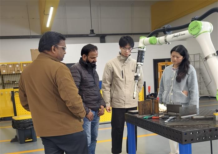 The client observed attentively throughout the visit, asking questions about technical details and production adaptability, which were answered meticulously by staff. Technical staff demonstrated the dexterity of the cobot arm, introducing its outstanding performance in improving welding efficiency and ensuring welding quality.